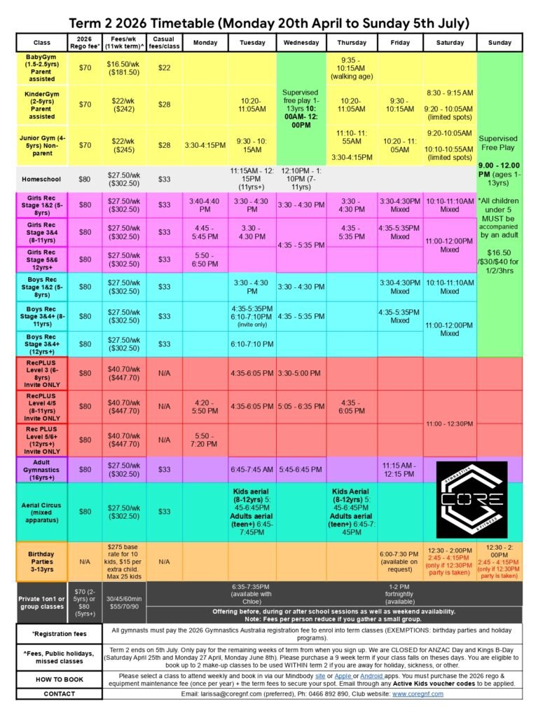 Please note, all gymnasts are required to pay the 2025 registration fee for their Gymnastics Australia Insurance.